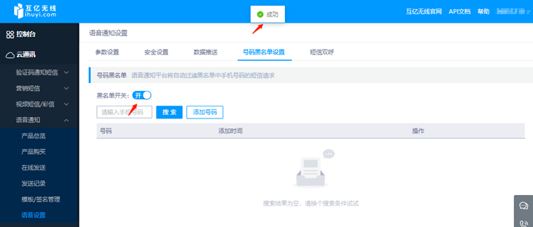 路徑[控制臺>語音通知短信>短信設(shè)置],右側(cè)中[號碼黑名單設(shè)置],可對對應(yīng)功能進(jìn)行調(diào)整配置。